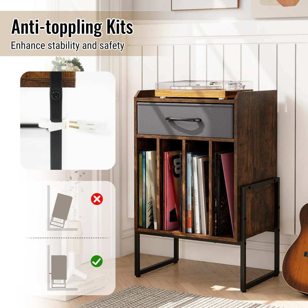 ● Enhanced Stability & Safety: This record player stand includes anti-toppling kits for secure wall mounting to prevent wobbling. Non-slip foot pads on the bottom legs protect floors from scratches and ensure steady placement.