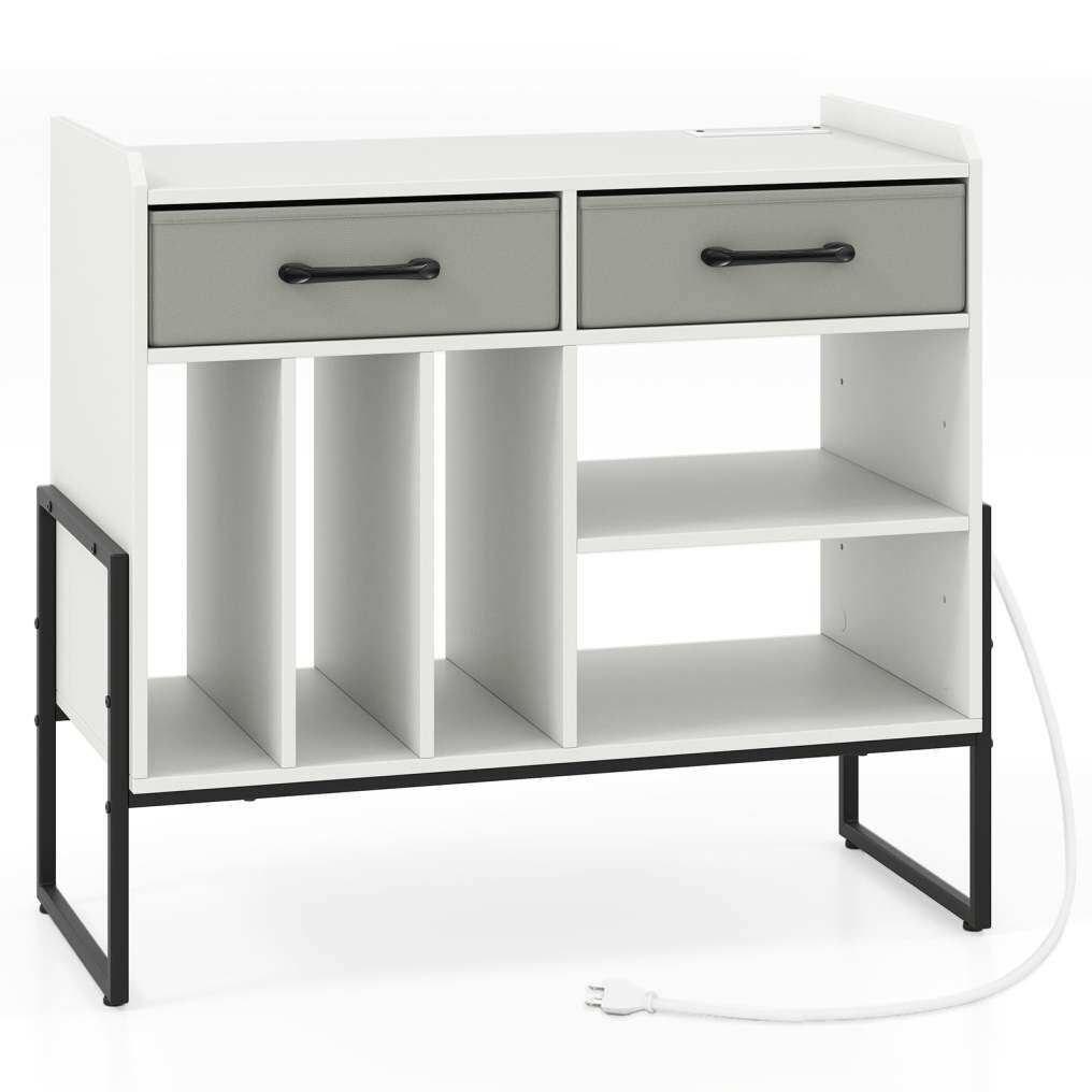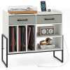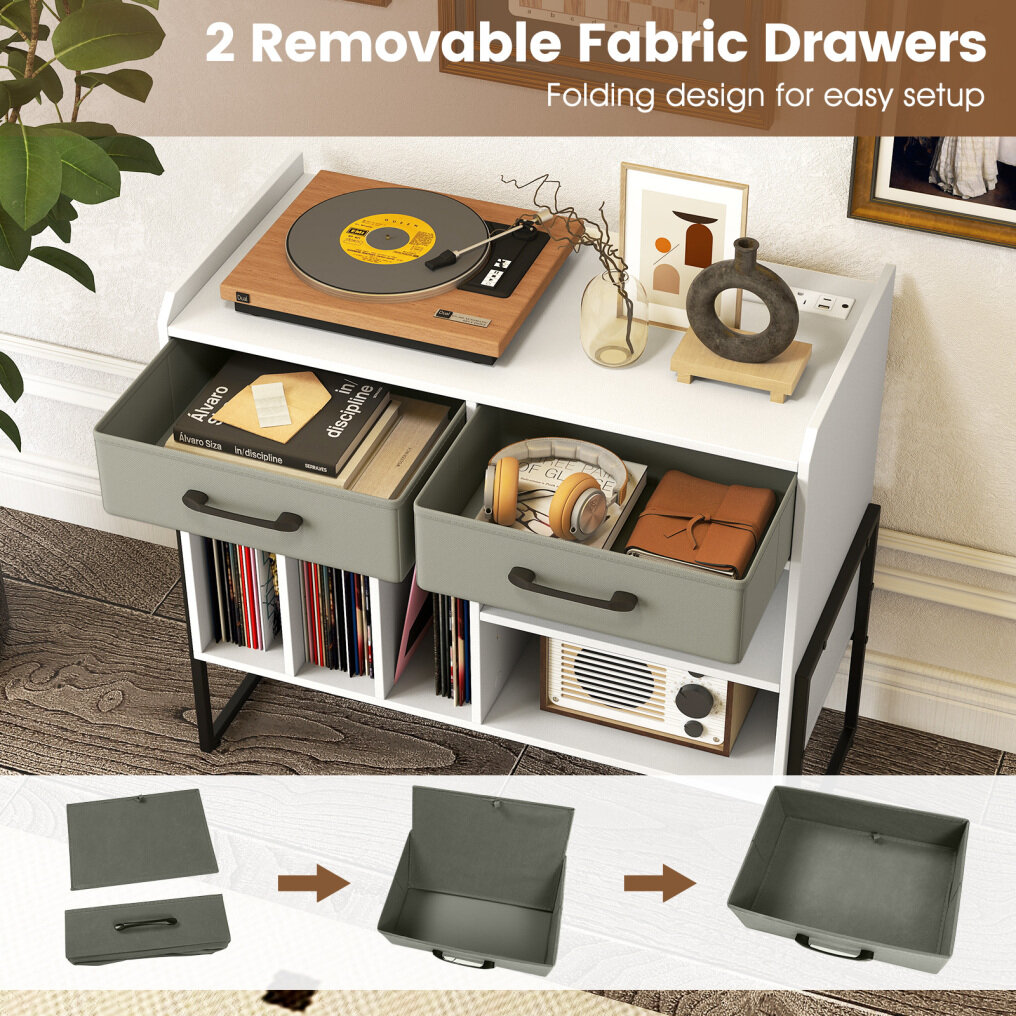 Large Record Player Stand with Charging Station Mid Century Modern Vinyl Storage Cabinet-White