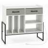 User-Friendly Details: This album storage organizer includes raised tabletop edges that prevent equipment and LPs from sliding off, while sleek drawer handles ensure smooth, effortless access to your accessories. The water-resistant surface wipes clean in seconds, making maintenance quick and preserving the stand's aesthetic appeal.