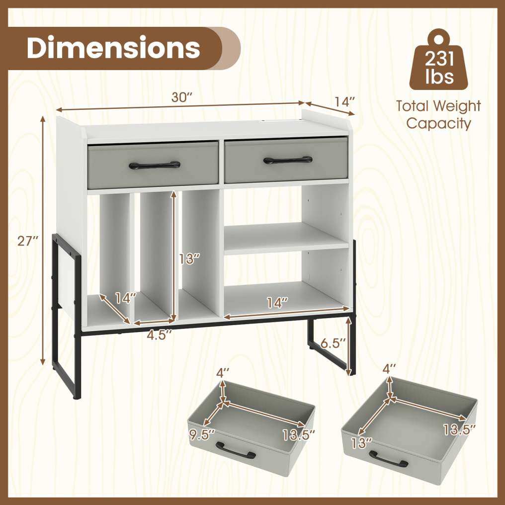 ● 2 removable fabric drawers with sturdy handles for convenient use