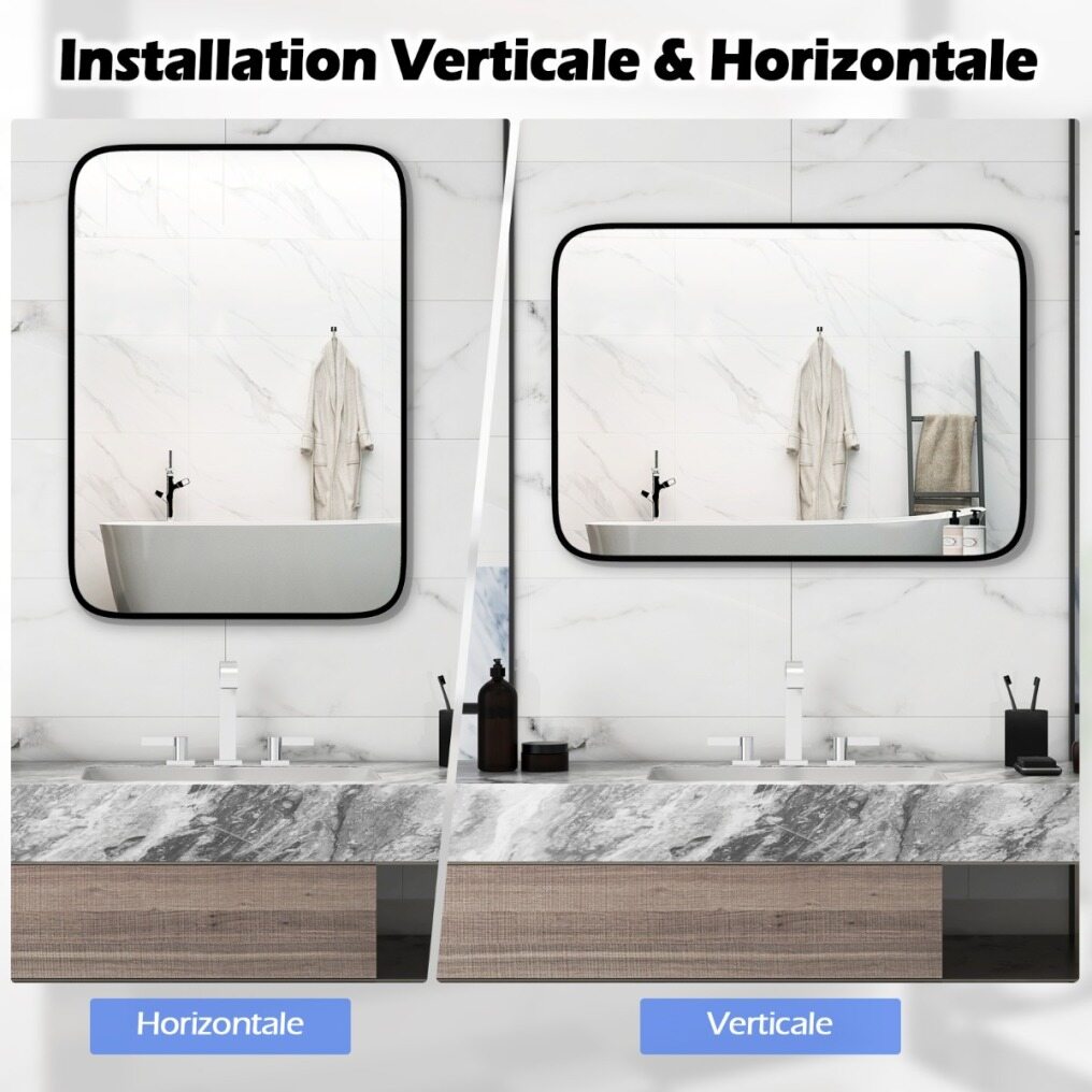 Vertical and Horizontal Installation: With the included metal hooks and expansion screws, this mirror can be easily mounted either vertically or horizontally, giving you the flexibility to choose the orientation that best suits your space.