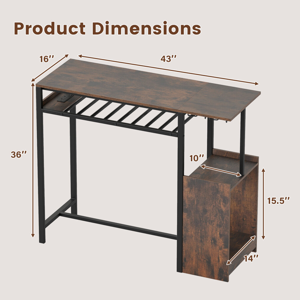 ● Ample Wine and Glass Storage: This tall kitchen table includes a wine rack that perfectly holds up to 8 bottles and 2 rows of glass racks storing 10 glasses neatly within easy reach, making wine service effortless and stylish in your home setting. Note: Storage depends on cup diameter.
