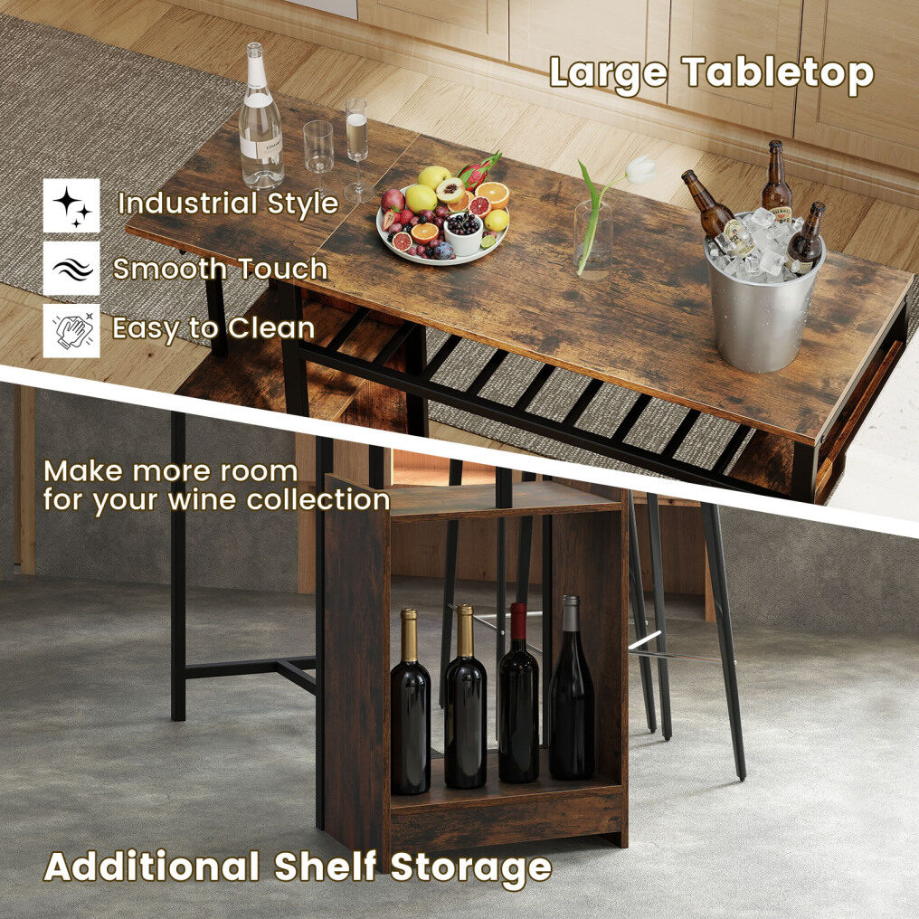 ● Spacious Industrial Design: The rectangular pub table offers a large tabletop that provides sufficient workspace or dining area while adding an industrial aesthetic to your room. Plus, 2 side storage shelves further increase capacity, perfect for expanding your wine collection or storing essentials.