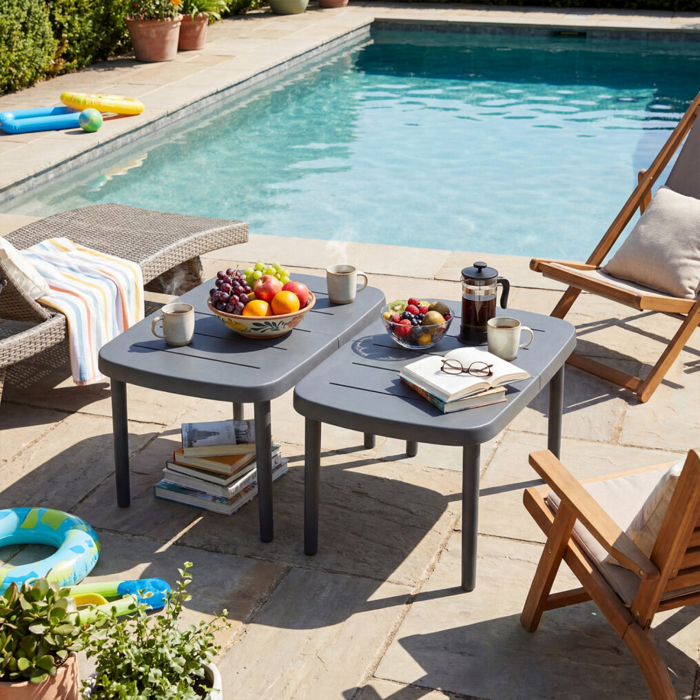 ● Versatile Outdoor Side Table: This coffee table adapts to poolside, balcony, garden, porch and lawn scenes, coordinating with existing furniture while serving as a stylish hub for drinks and snacks. Please avoid rain exposure for prolonged service life.