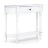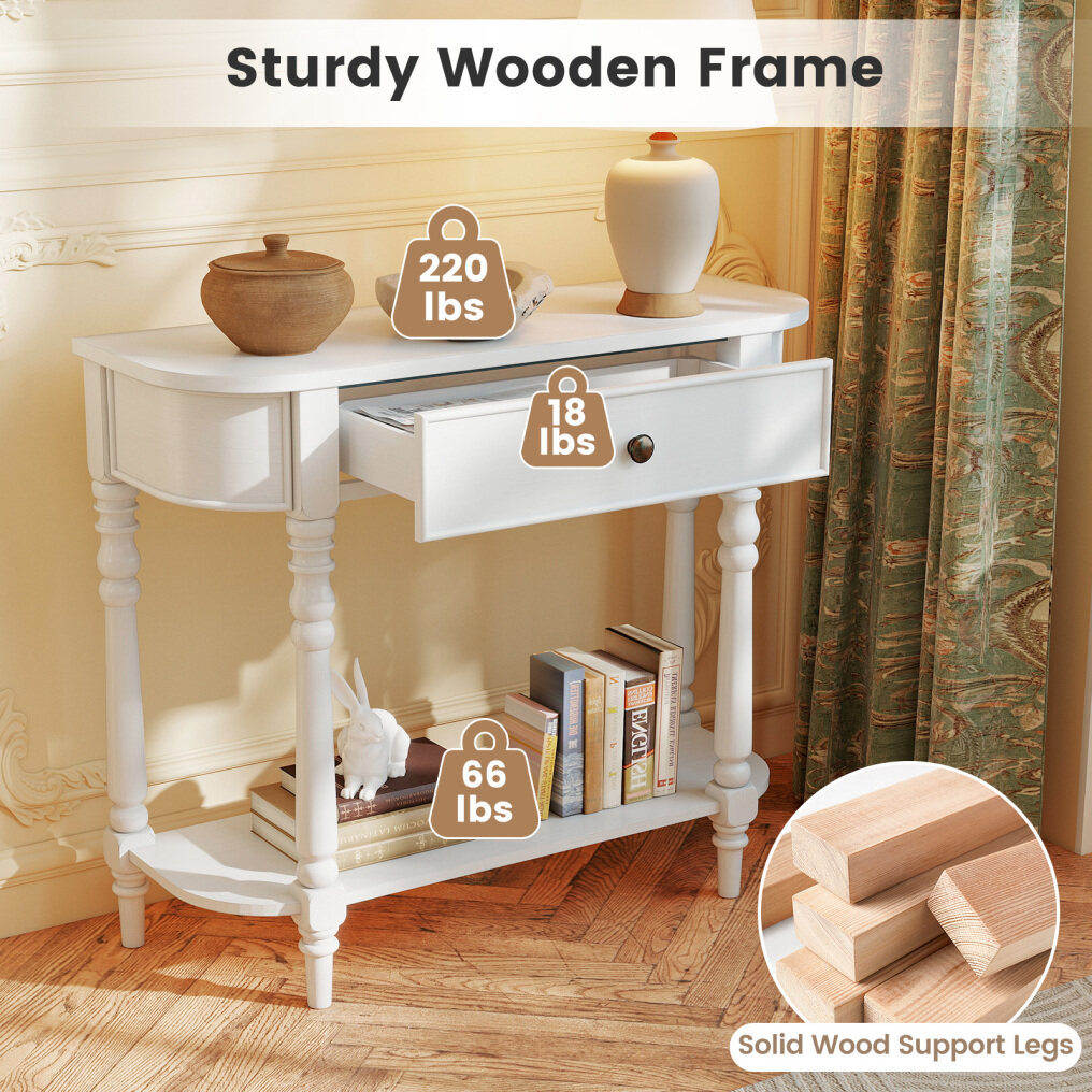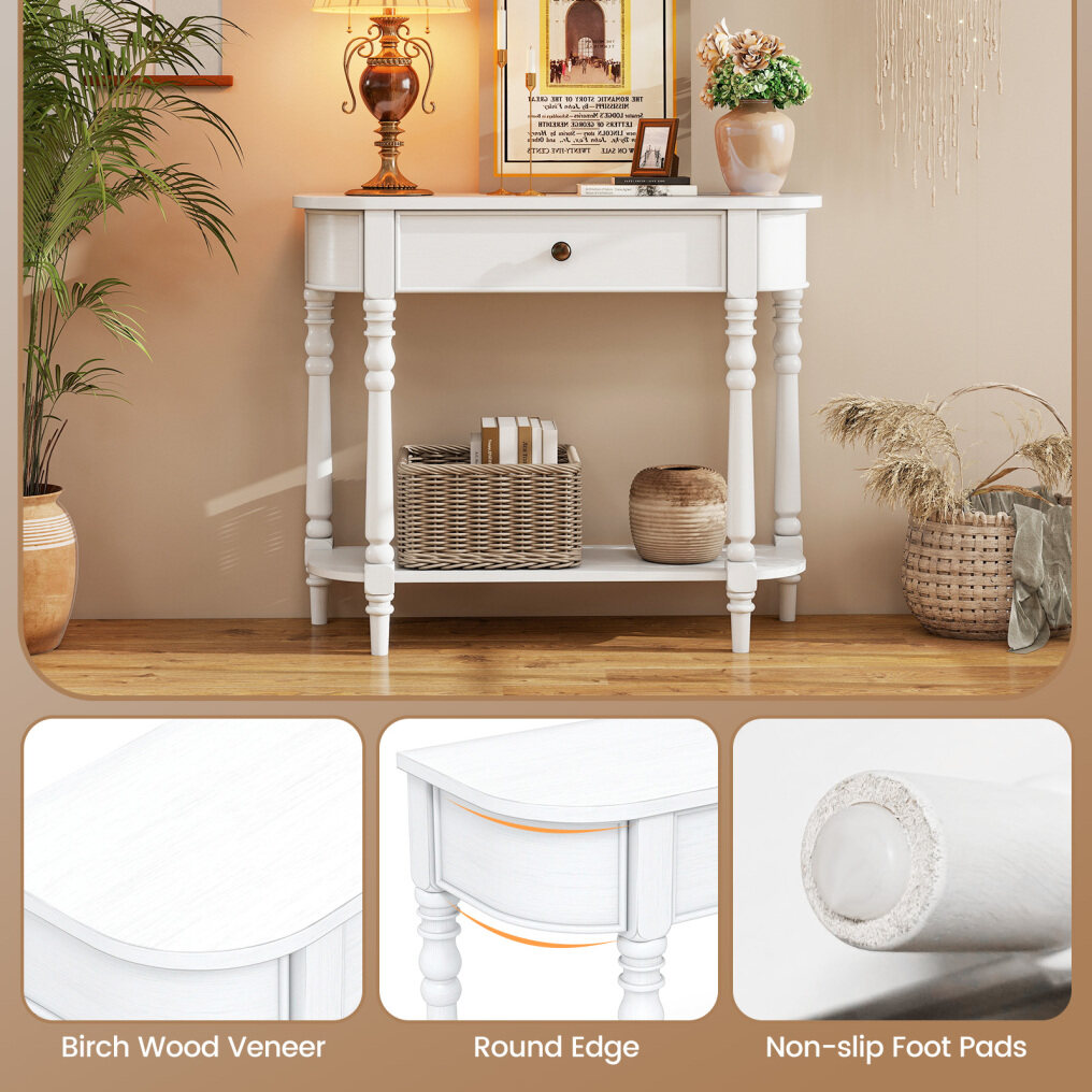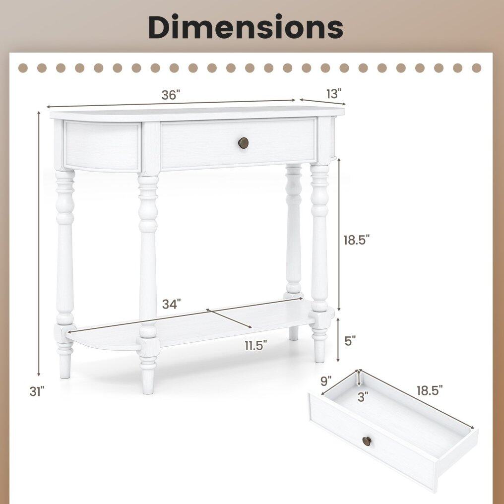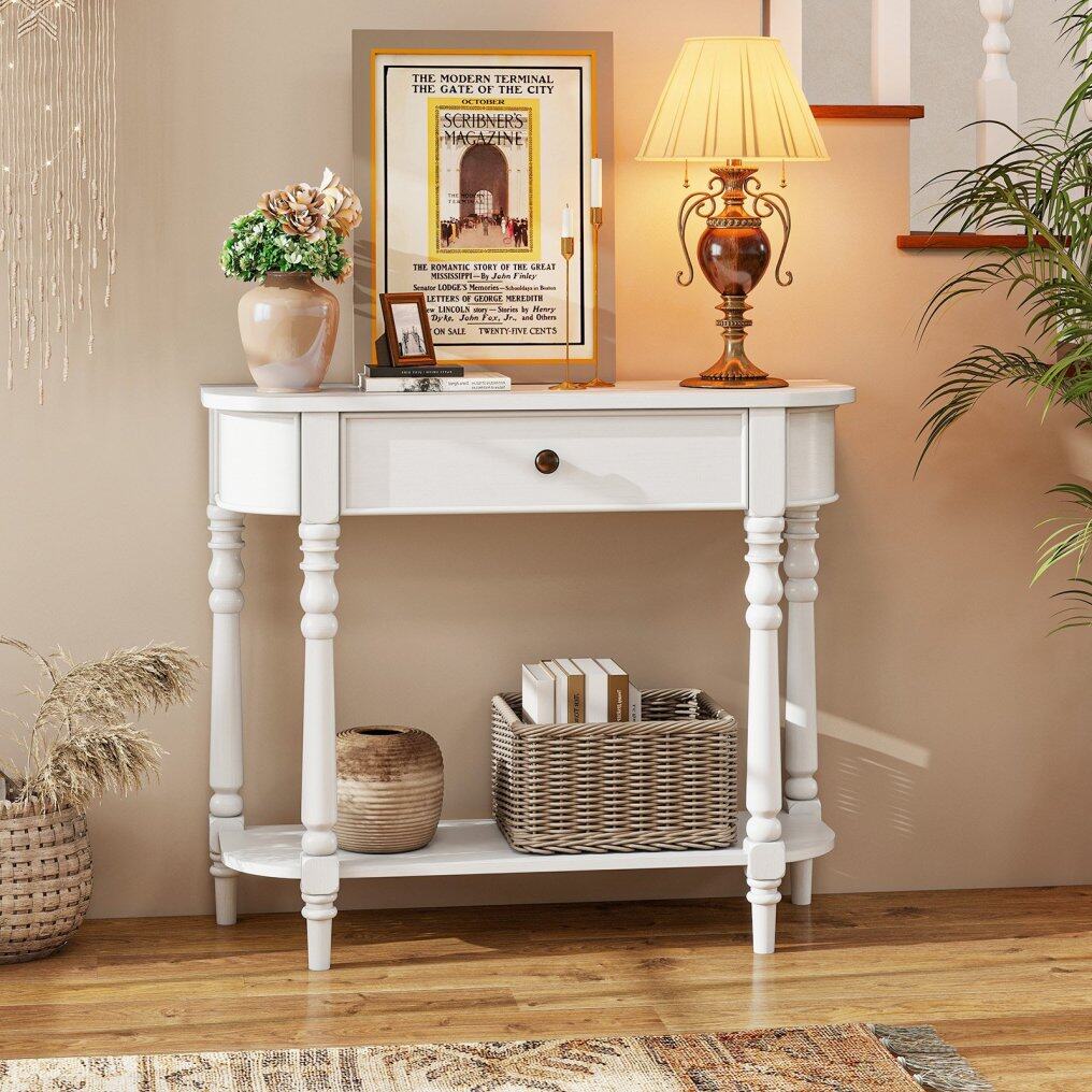 ● Ample Storage Space: This retro console table is not only a charming addition but also offers practical solutions. It features a spacious tabletop, a discreet drawer perfect for storing keys, remotes, and other small items, and a lower shelf ideal for books, vases, or baskets.