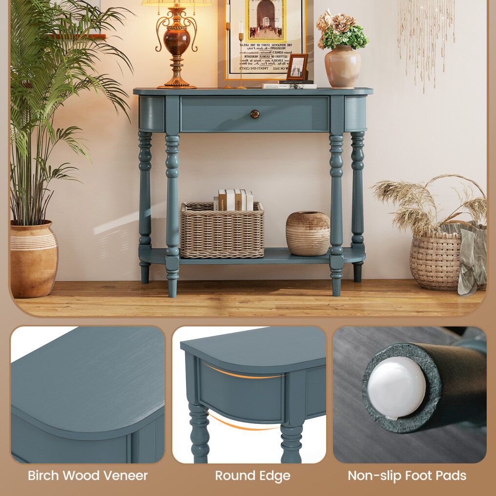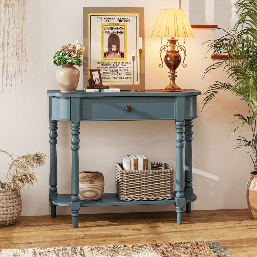 ● Ample Storage Space: This retro console table is not only a charming addition but also offers practical solutions. It features a spacious tabletop, a discreet drawer perfect for storing keys, remotes, and other small items, and a lower shelf ideal for books, vases, or baskets.