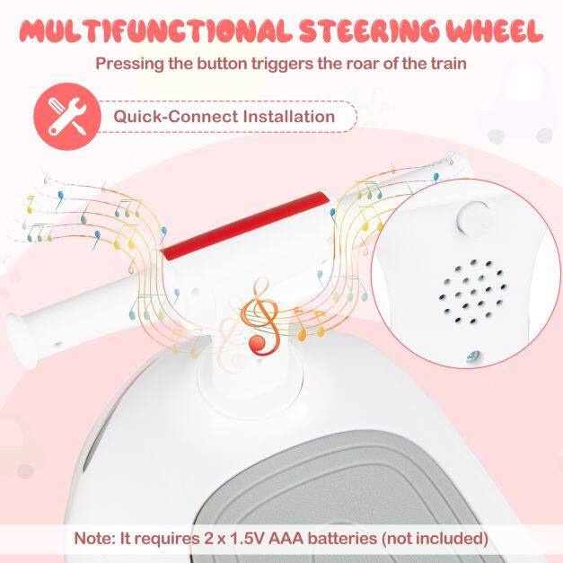 Interactive Fun: Your little explorer can press the button on the steering wheel of the ride on car to hear the roar of the train - it is like they’re driving a real locomotive! Quick-connect installation and 2 x 1.5V AAA batteries (not included) make it easy to get started. It is perfect for kids aged 19-36 months who love imaginative play!