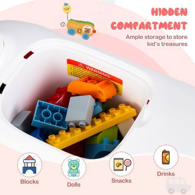 Under-Seat Storage: The ride on toy features handy under-seat storage - perfect for keeping little treasures close at hand. Whether it’s blocks, dolls, snacks, drinks, or tiny treasures, this storage keeps everything organized and within reach for your little adventurer.