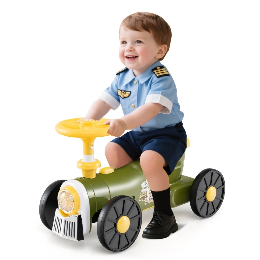 Enhanced Safety Design: The ride on toy is built with a secure 35° steering angle and 4 large wheels, providing a stable and smooth ride on various surfaces including wood, cement, tile, and asphalt, making it an ideal choice for adventurous toddlers.