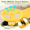 Exquisite Features: Engage your child in hours of active play with the kids ride on car, equipped with a train whistle sound button, a realistic headlight, and vibrant stickers to capture their imagination! Note: It requires 2 x AA batteries (not included).