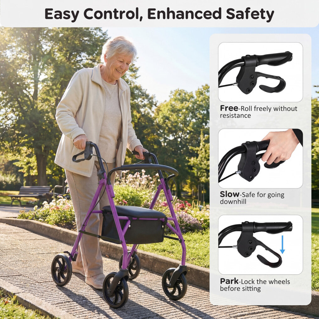 ● Adjustable and Thoughtful Features: For enhanced comfort, this rolling walker features 7-level adjustable height, ergonomic hand grips, a soft foam-wrapped backrest, and a soft padded seat. Plus, the spacious under-seat storage bag is perfect for personal essentials.