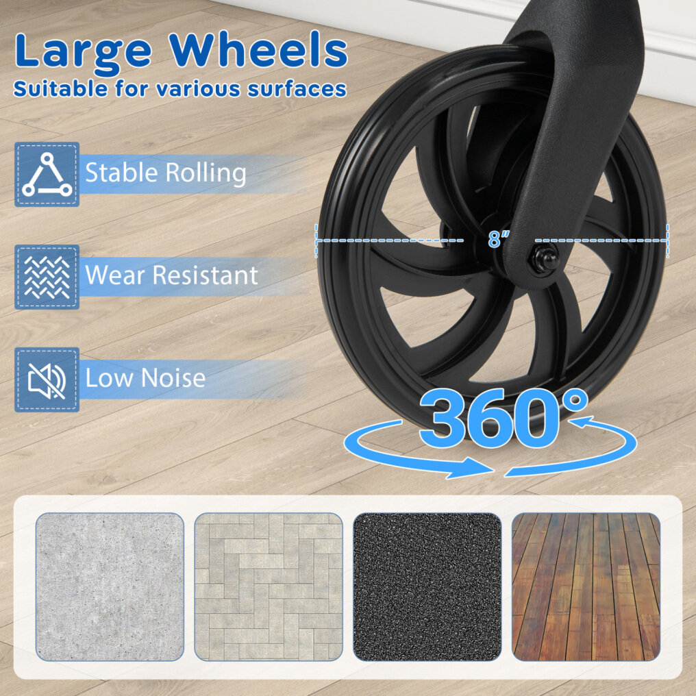 ● 8-Inch Large Wheels: The high-quality wheels are designed to glide smoothly over various surfaces, from sidewalks and paths to carpets and wooden floors. These big wheels ensure stable rolling, making outings and daily activities more enjoyable.