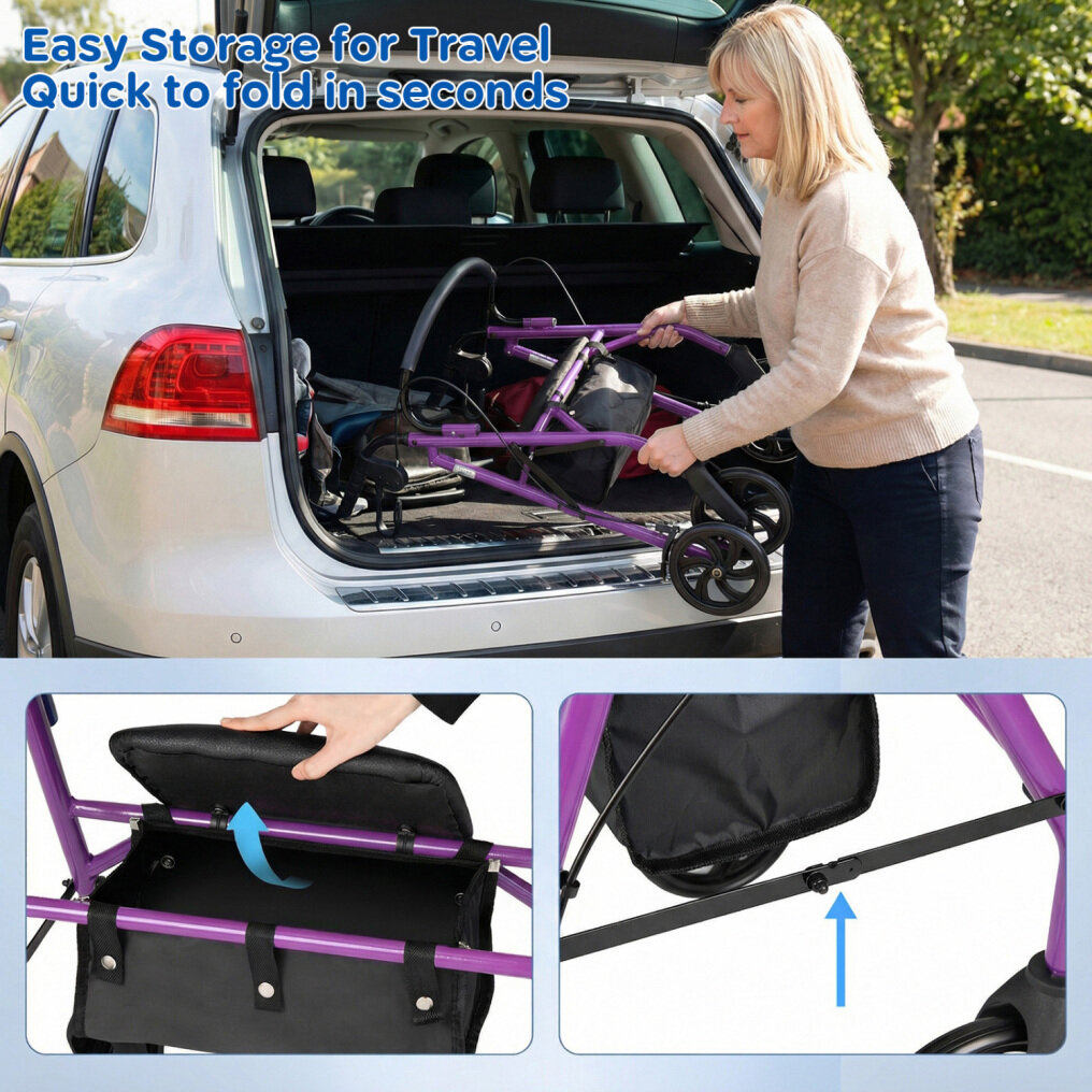 ● Easy Folding and Portability: This wheeled rollator is quick to fold in seconds for effortless storage or travel, fitting easily in car trunks or closets. This rollator is a warm, practical gift for seniors or loved ones, providing independence, comfort, and thoughtful support wherever they go.