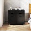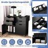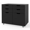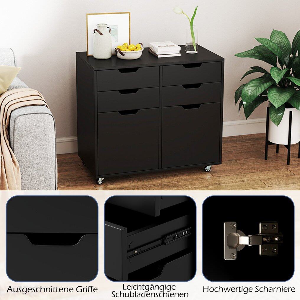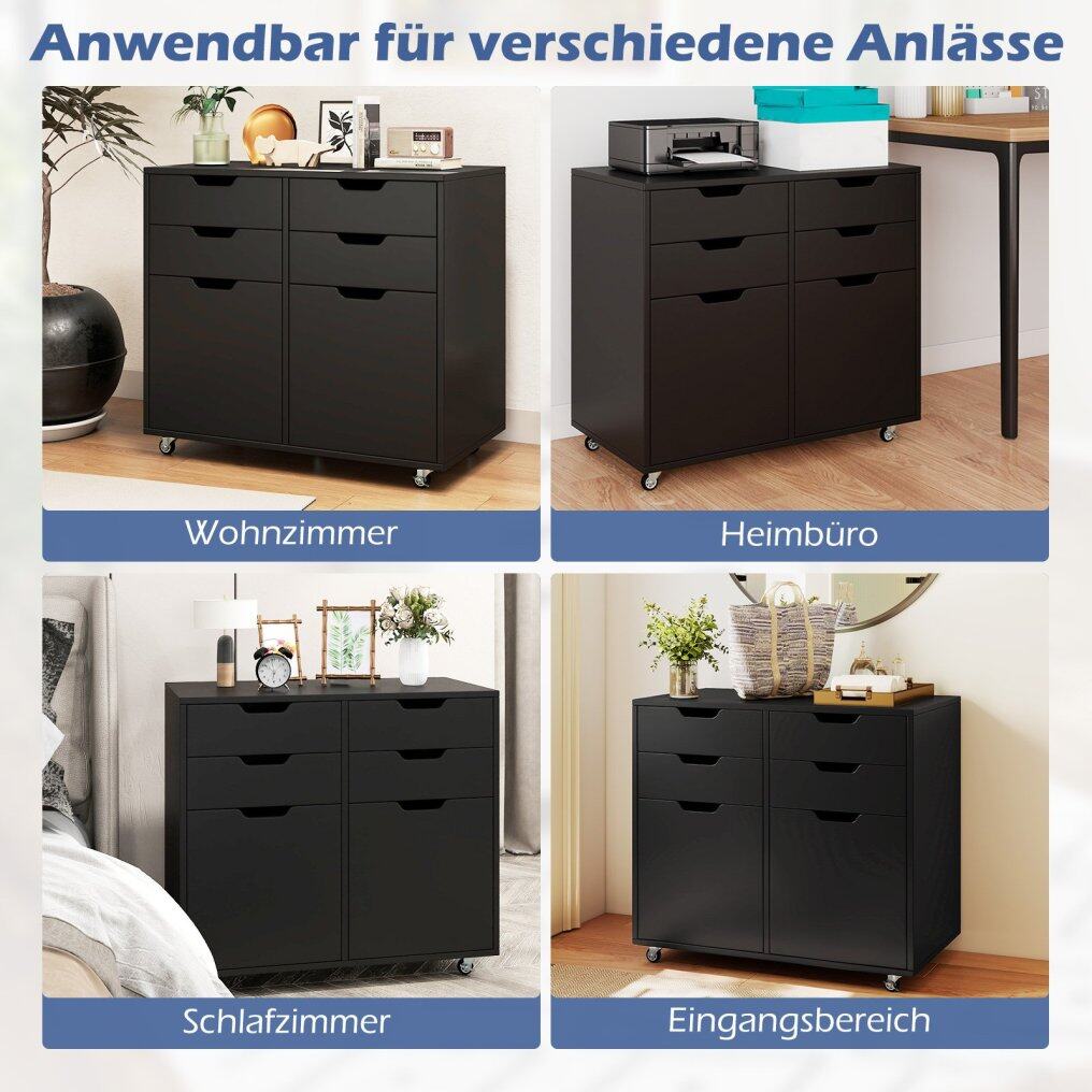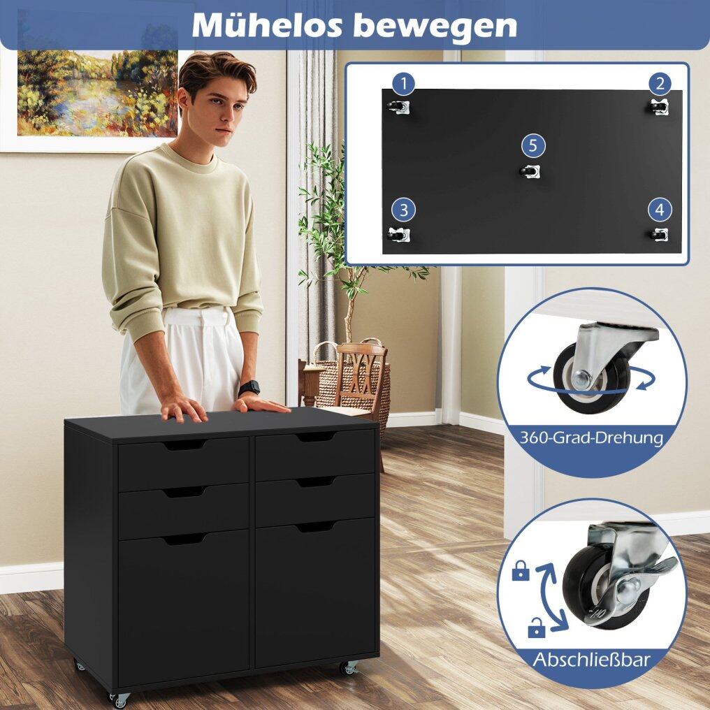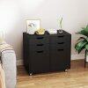 Featuring a generous work surface, four drawers, and two compartments with doors, the rolling storage cabinet offers plenty of space for office supplies, books, decorative items, or other personal items. The mobile printer stand is built with sturdy panels that can support up to 85 kg, easily holding heavier office equipment and other essentials. It also features five universal casters (two with brakes) that allow for effortless movement while remaining in place when needed. Its modern, stylish design fits well in both homes and offices, making it the perfect solution for use as a filing cabinet, printer stand, craft storage, or dresser.