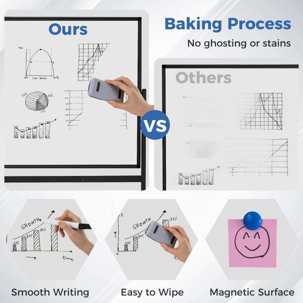 Enhanced Durability and Clarity: Thanks to the specialized baking technique, this dry erase board boasts a surface that’s 2x more stain-resistant than standard boards. Maintain pristine clarity in your notes and drawings session after session, promising clear visibility and easy erasing.