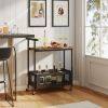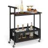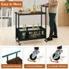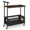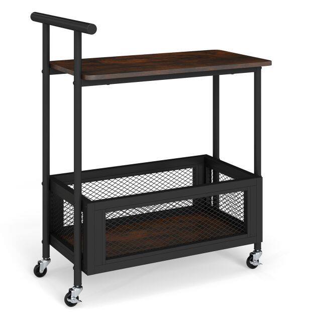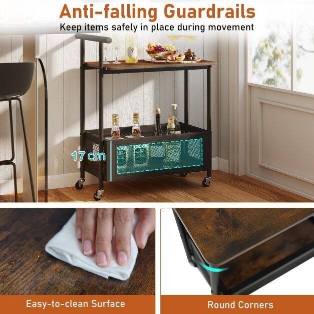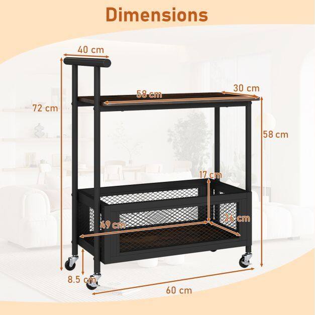 Transform your living space with this stylish and sturdy rolling side table. Featuring two tiers for storing everyday essentials, snacks, and more, it offers easy access while you relax. Built to last, this versatile cart supports up to 40 kg thanks to its robust frame and easy-to-clean top. Glide it from room to room on its four universal casters, two of which have brakes, making it safe and secure from the kitchen to the sofa thanks to its locking mechanisms and ergonomic design. With its trendy industrial look combining rustic wood shelves and matte black steel, this table blends seamlessly into any décor, whether as a stylish bedside table or a practical snack station! Combine durability, style, and smooth mobility to enhance your space with functionality.