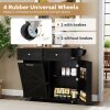 ● Lockable Universal Wheels: Equipped with 4 rubber universal wheels, this kitchen island cart glides smoothly across various floor surfaces. 2 of the wheels feature a reliable braking system, ensuring stability wherever you choose to position the rolling island table.