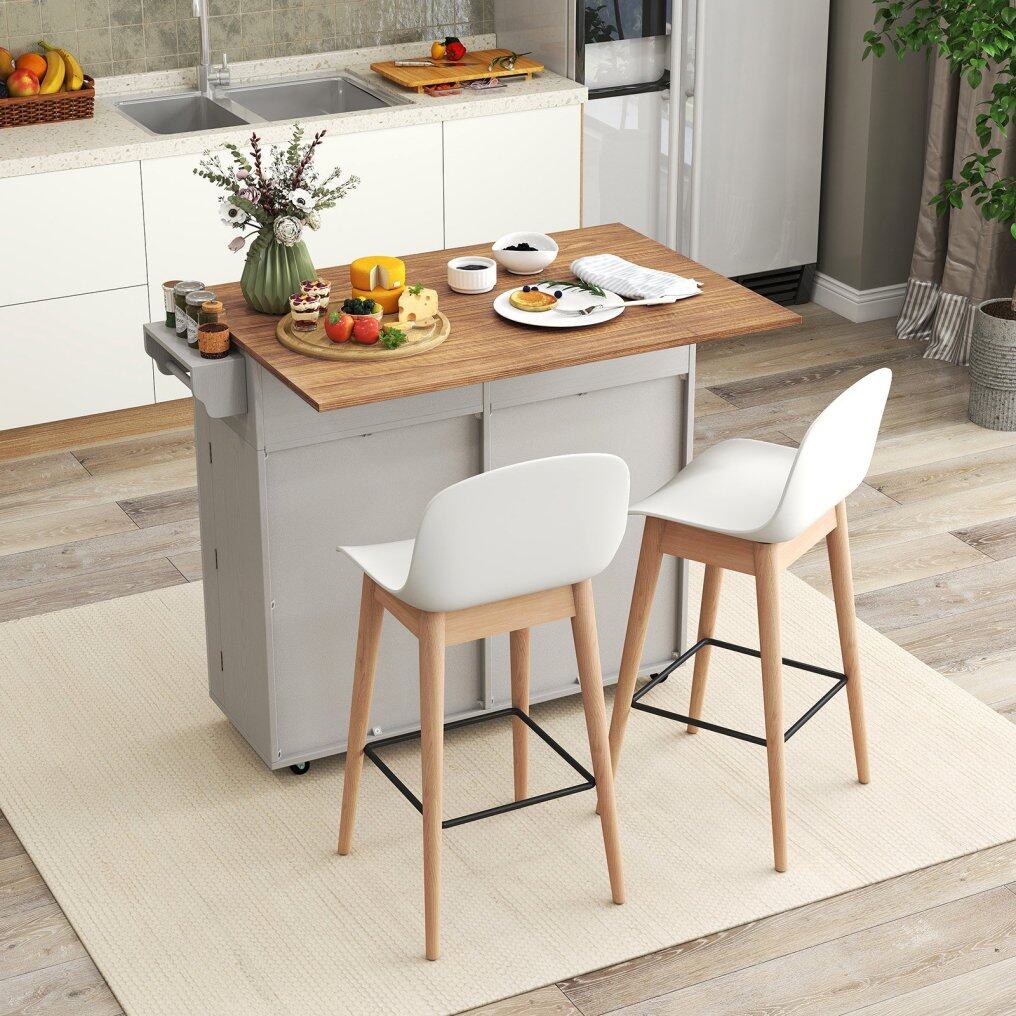 ● Functional Drop-Leaf Design: This mobile island table features a convenient drop leaf that can be easily folded or unfolded. Whether for meal prep or as an extra dining area, the generous top with a drop leaf offers unparalleled convenience. You can simply fold the drop leaf to save space when it is not in use.
