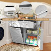 ● User-Friendly Construction: Crafted for reliability, this portable island on wheels boasts a magnetic door catch and anti-stuck device to enhance durability and ease of use. More importantly, the zinc alloy handles offer you a comfortable grip when accessing your stored items.