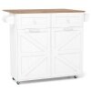 ● Lockable Universal Wheels: Equipped with 4 rubber universal wheels, this kitchen island cart glides smoothly across various floor surfaces. 2 of the wheels feature a reliable braking system, ensuring stability wherever you choose to position the rolling island table.