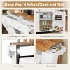 ● Classified Storage Options: This rolling kitchen table offers ample organization with 2 large drawers and a smart cabinet equipped with door racks featuring anti-falling baffles. Additionally, the built-in spice and towel racks provide quick access to kitchen essentials, helping to keep your space clutter-free.