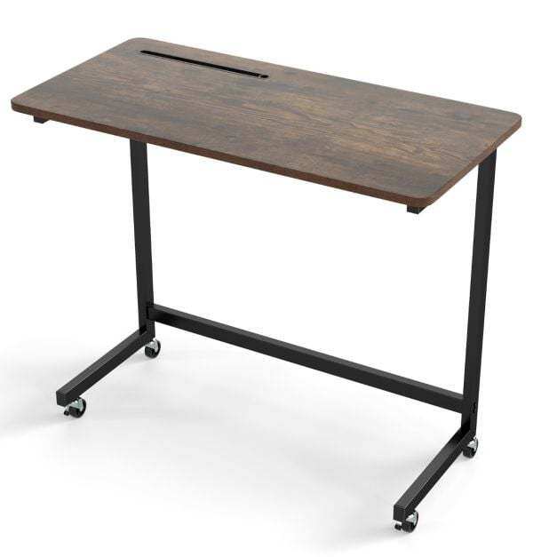 The over-the-bed table features a wide tabletop to keep a variety of items within reach and built-in slot for easy access. Equipped with 4 universal wheels(2 with brakes), the laptop desk ensures easy movement and stable positioning as needed. Its C-shaped design allows the table to easily slide under sofas, beds, or chairs, making it a convenient tray table or portable workstation for living room and bedroom. Built to last, the sturdy metal frame offers reliable support and durability for daily tasks. All in all, this multi-purpose end table creates a practical solution for working, dining, or relaxing at home.