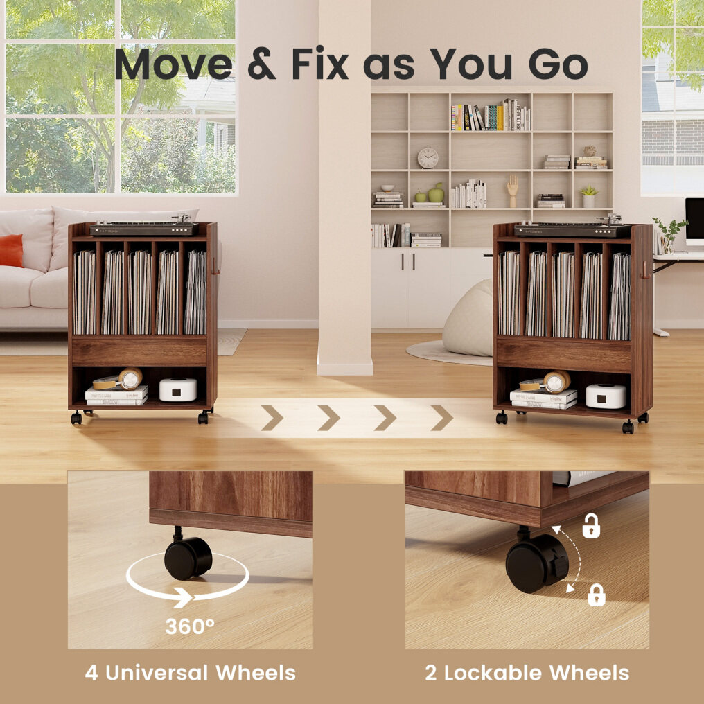 ● Easy Mobility: Equipped with 4 universal casters, including 2 lockable ones, the mobile turntable stand boasts effortless movement and stability when needed. It is a breeze for you to move it from one room to another, finding an ideal spot to enjoy the melody.