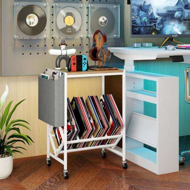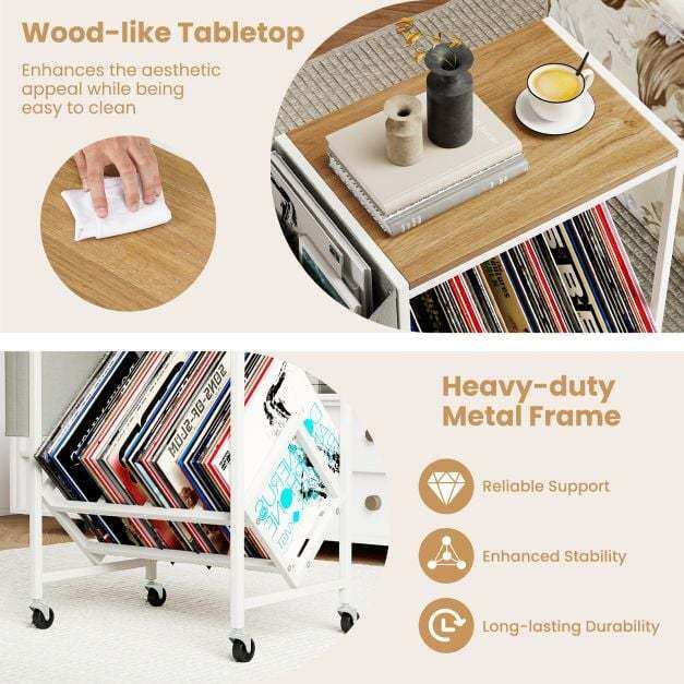 Multifunctional Use: This rolling vinyl record storage shelf blends seamlessly with different interior decorations. Ideal for living room and music room, it acts as a stylish showcase that highlights your vinyl collections.