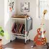 Built to Last: Supported by powder-coated metal frame, this mobile vinyl display shelf offers exceptional strength and longevity. It ensures a stable surface that securely holds your audio gear, providing reliable storage for years to come.