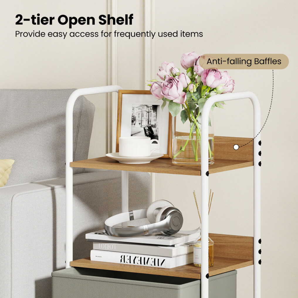 Convenient 2-tier Storage: The rolling utility cart features 2-tier open shelves with anti-falling baffles, allowing easy access to frequently used items while preventing them from slipping off.