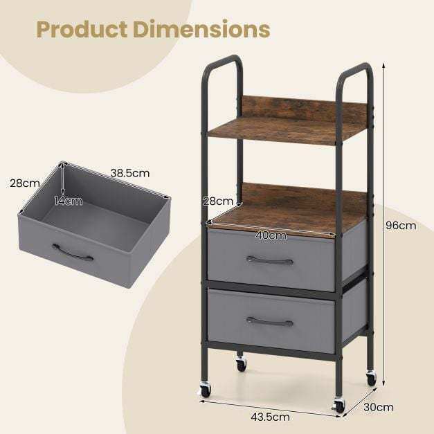 Neat & Enclosed Organization: This rolling cart with drawers includes 2 fabric drawers that offer enclosed storage, helping to keep personal belongings neatly organized and out of sight. Plus, these drawers are foldable for easy assembly.