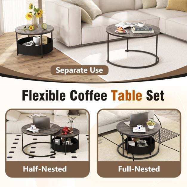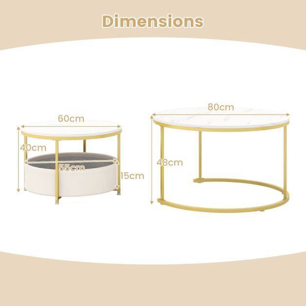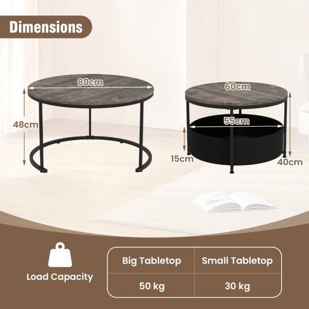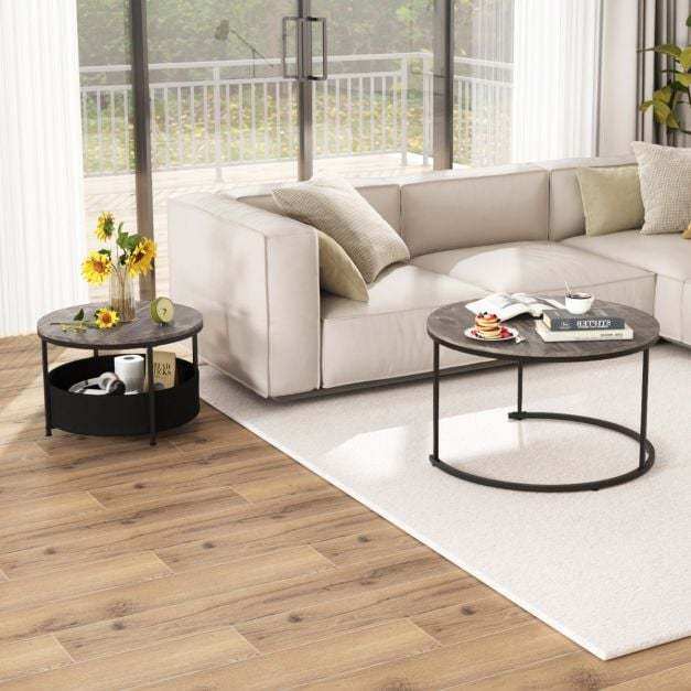 Versatile Table Set: The coffee table set of 2 includes a big 80 cm table and a smaller 60 cm table. Perfectly paired for a cohesive look, they can also be used separately to meet diverse needs, showcasing flexibility and functionality in any home decorations.