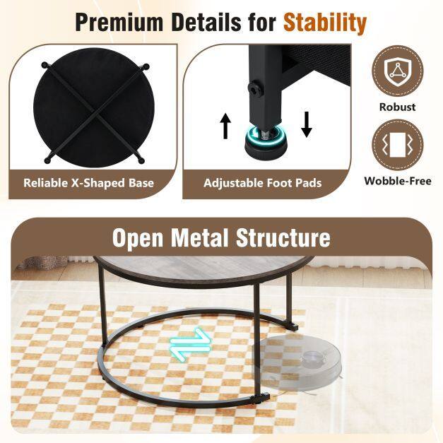 Easy Maintenance: Keep your home tidy with the circle end table set, where the big coffee table features an open base for convenient sweeping underneath. Both tables boast smooth surfaces that make wiping up spills a breeze.