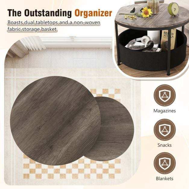 The Outstanding Organizer: Featuring dual tabletops, the side table set offers ample space to hold your coffee and snacks during relaxation. Furthermore, the removable fabric storage basket is ideal for organizing magazines, toys, or blankets.