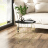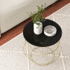 ● Stylish Design: The round coffee table boasts an elegant faux marble tabletop that delivers a chic and luxurious vibe to any interior. The golden metal frame adds a touch of sophistication to your living room and is sure to impress your guests.