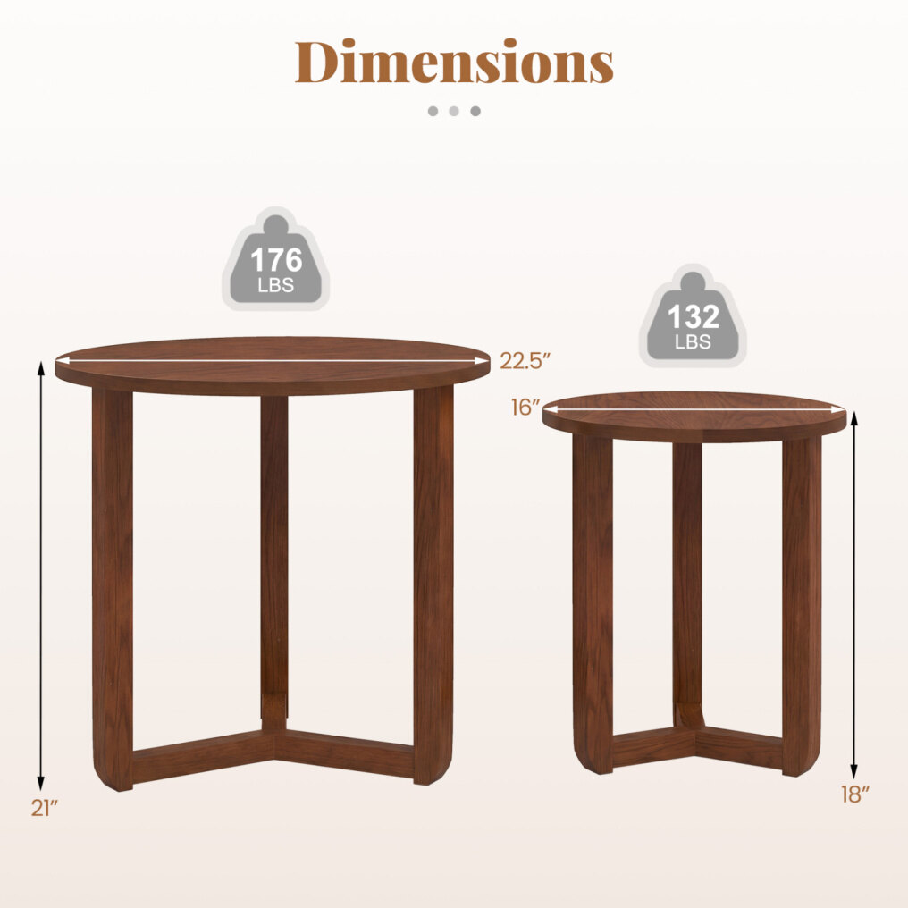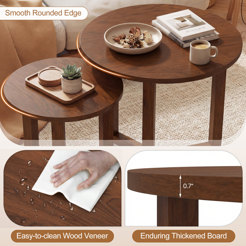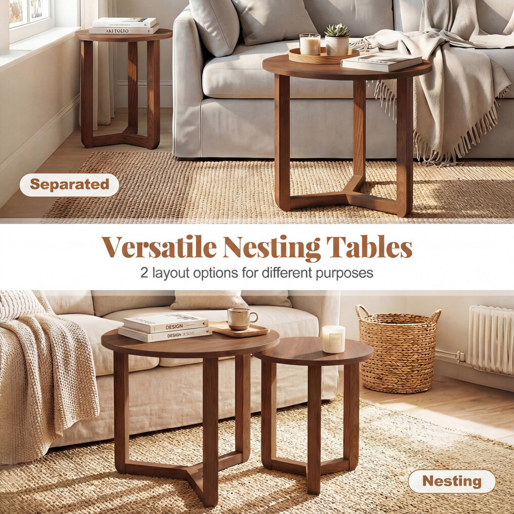 ● Easy Assembly: You can quickly put the table together using the included detailed instructions. The straightforward process means your round nesting end tables are ready to use almost immediately after unboxing, with no complicated tools required.