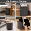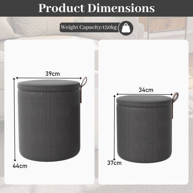 Hidden Storage Capacity: Designed for ultimate organization, these round storage ottomans feature generous concealed compartments (40L in the large and 25L in the small). The artificial leather pulls on the removable lids provide effortless access, enabling you to tidy up your space with ease and style.