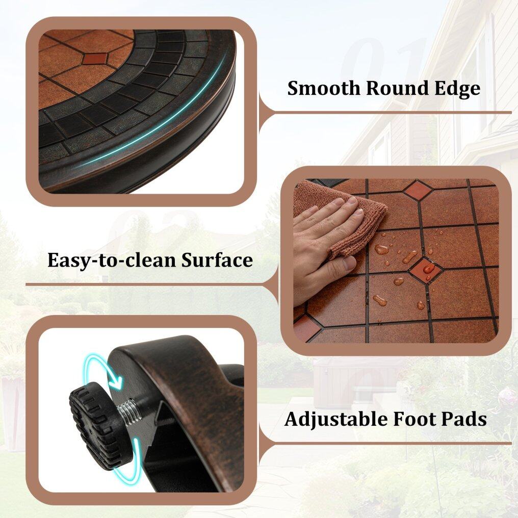 Uniquely designed tabletop: This bistro table features a unique carved texture, making it a real eye-catcher. The intricate details and artistic design lend it a sophisticated and elegant ambiance, enhancing the overall look of your outdoor space.