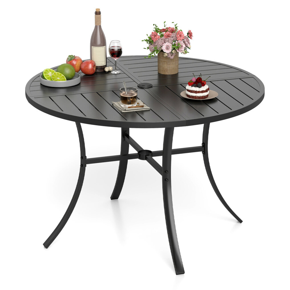 ● Custom Umbrella Fit: Featuring 2 umbrella hole sizes (1.97" and 1.57") with a detachable lid, this patio dining table securely supports your outdoor umbrella (not included). The bottom fixing hole ensure extra stability. Note: Requires an umbrella stand (not included).