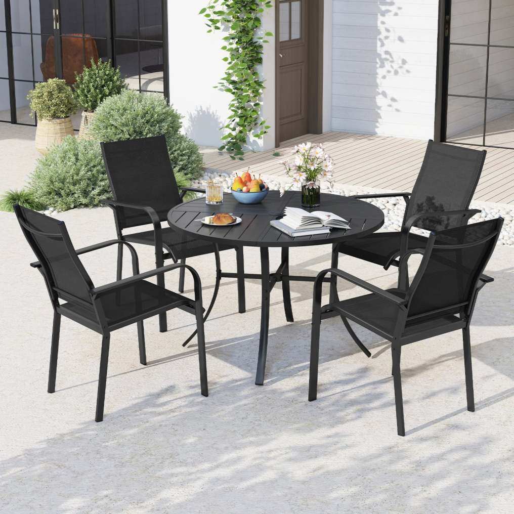 ● Perfect Size for 4: The generous 42.5" round top is ideal for 4-person gathering. Around this metal bistro table, you can share laughter and meals outdoors with friends and family.