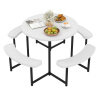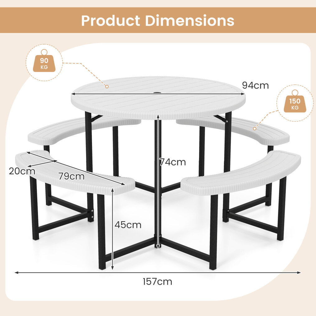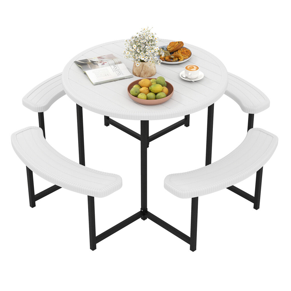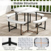 ● 4-8 People Outdoor Dining Set: The 37" round picnic table comes with 4 curved seats for 4-8 people. Furthermore, one seat can be removed to facilitate wheelchair accessibility. Whether hosting a barbecue or enjoying a cozy outdoor meal, the picnic table is the perfect centerpiece for your gatherings.