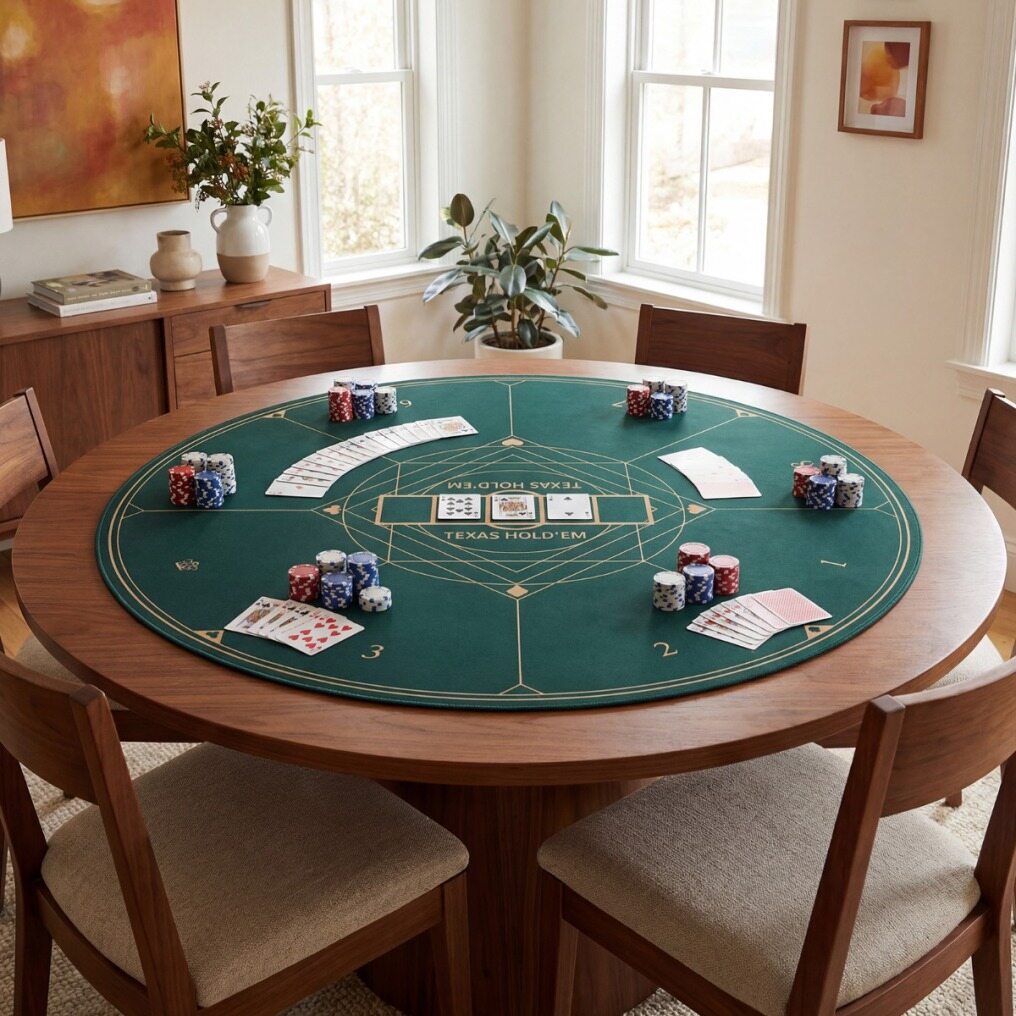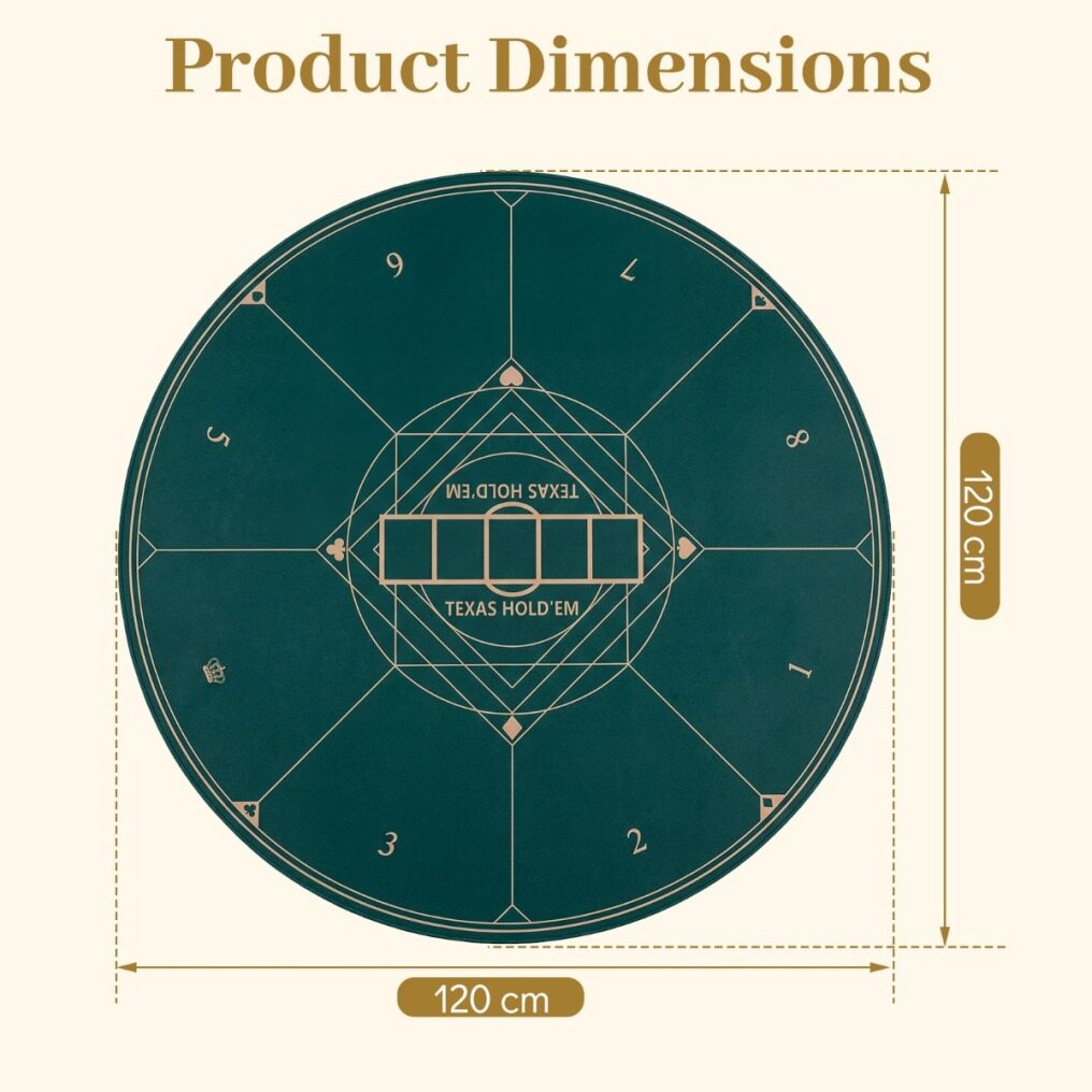 Stay-Power Grip: A non-slip rubber base offers unwavering security, ensuring the poker mat holds firm on any surface. No more frustrating slips, whether you’re in a lively casino or at a backyard barbecue.
