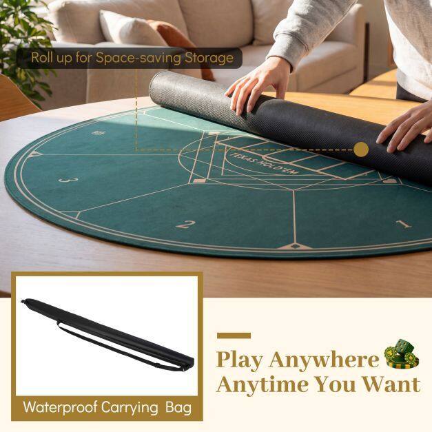 Foldable & Portable Design: Ultra-lightweight at just 3.5lbs, this blackjack mat rolls in seconds and fits neatly into its waterproof carrying bag. It is perfect for transforming camping trips, tailgate parties, or family holidays into instant poker action.