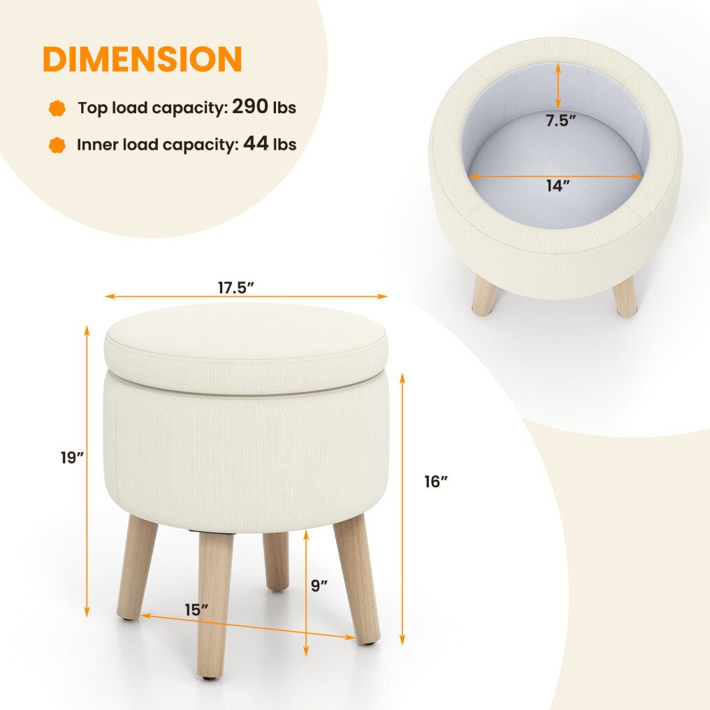 ● Practical Flip-Over Lid: When the lid is facing down, the storage ottoman serves as a footrest to level legs for relaxation. But when it's flipped over, the stool becomes a side table to hold drinks, snacks, or smartphones for you during a movie.