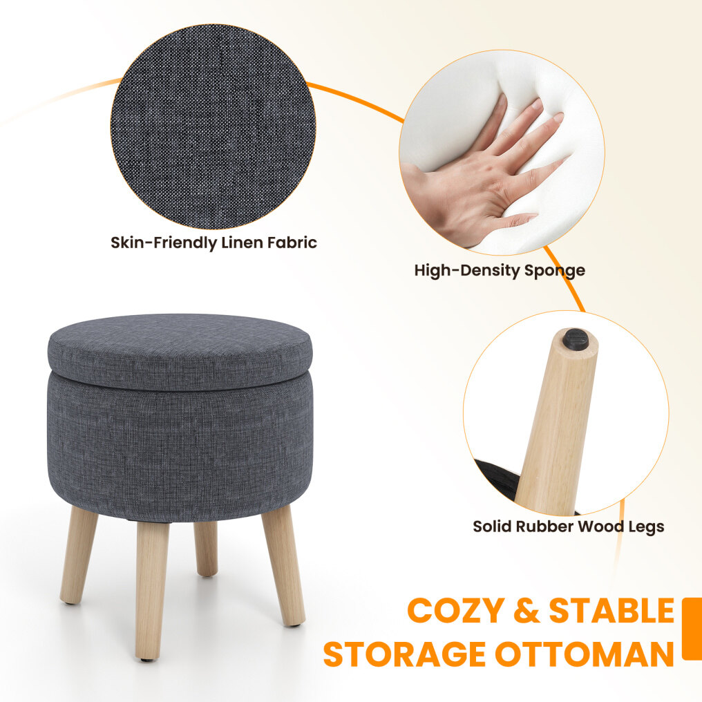 ● Comfy and Safe Seat: As the storage ottoman is cleverly padded with elastic sponge & breathable linen fabric, you will enjoy super cozy touch. Also, its round shape & great softness will distribute the pressure of sudden collision to prevent you from injuries.