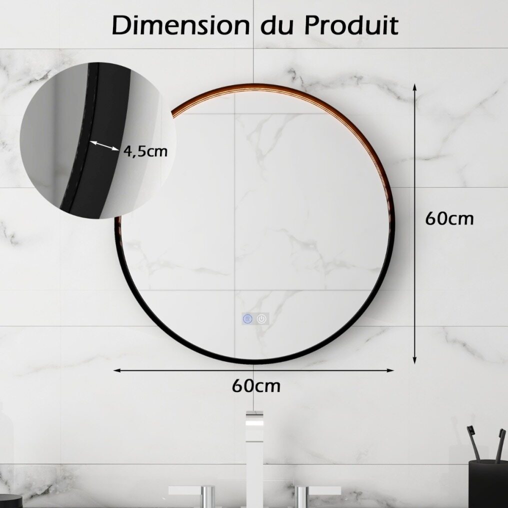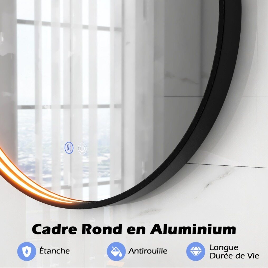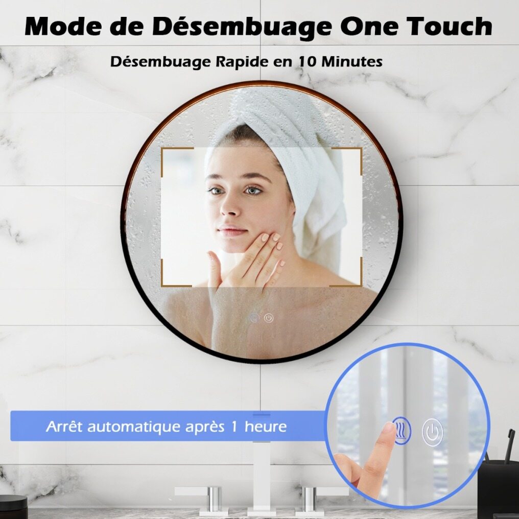 Enhance your morning bathroom routine with our dimmable round lighted mirror featuring customizable lighting with 3 color temperatures and adjustable brightness. Plus, effortlessly eliminate fog with the efficient defogging feature and save your favorite settings with the memory function. Easily install with 2 wall mounting options and enjoy the convenience of time and temperature display. Elevate your bathroom today with this sleek and innovative lighted mirror.