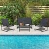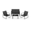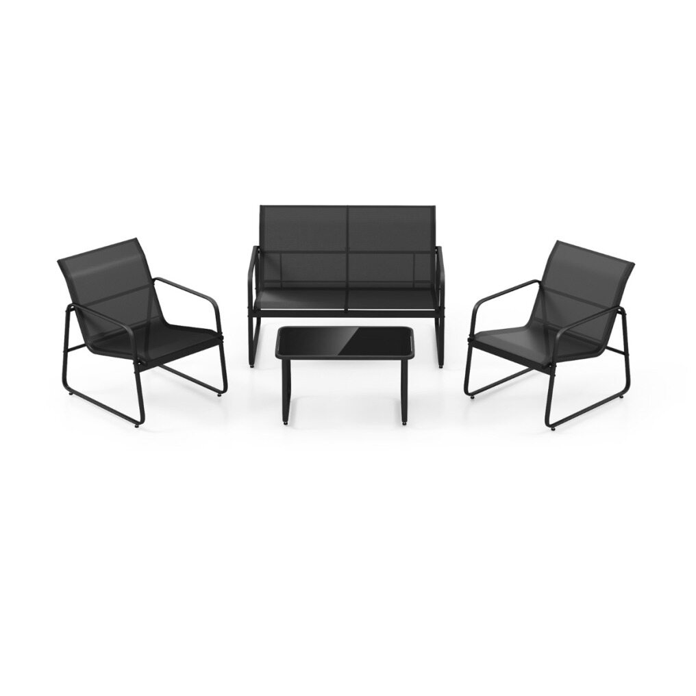 This 4-piece outdoor furniture set is perfect for most patios, backyards, porches, balconies and poolsides. With only a few minutes of assembly, you can sit on the well-designed chairs and loveseat to fully relax. The premium breathable fabric strongly supports your body while the solid metal frame provides great stability. In addition, the functional coffee table features a tempered glass top, which is sturdy to support your items.