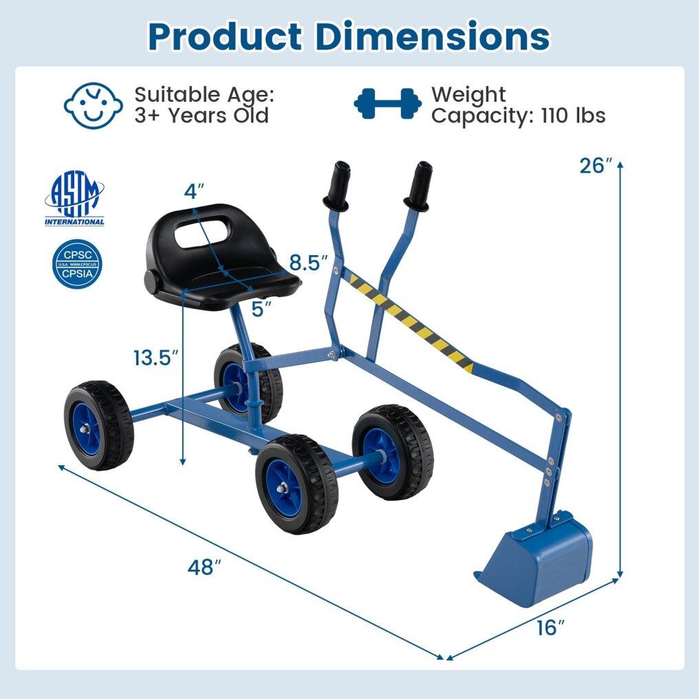 Smooth Ride and Sturdy Structure: Equipped with 4 rolling wheels, the digger is easy to move on various roads. Moreover, the heavy duty metal frame ensures strong and steady support. The weight capacity is 50kg.