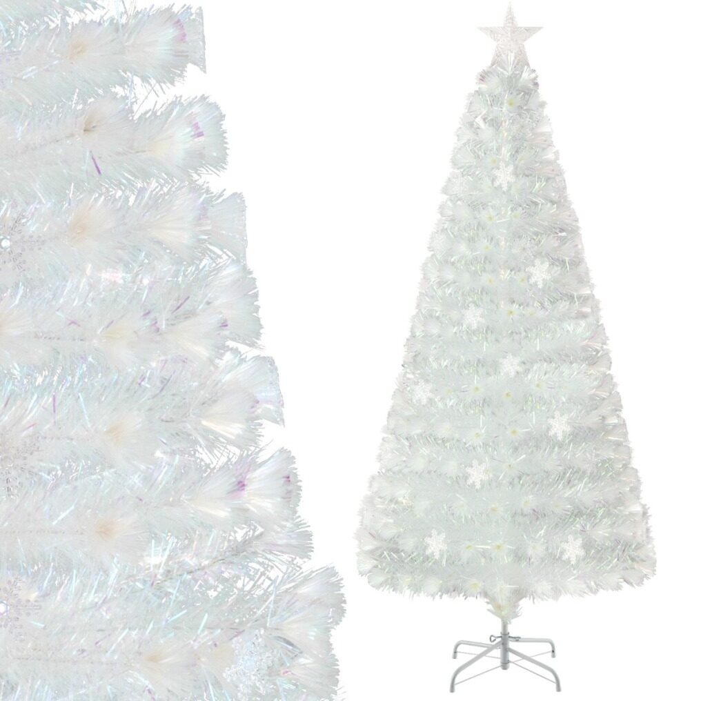 Our Christmas tree is a beautiful Christmas decoration. The branches with iridescent leaves present a colorful appearance in natural light, making the tree an exquisite Christmas decoration that catches everyone's attention. In addition, the snowflake lights and colorful fiber optics will illuminate your space. Decorated with a glowing star on top, this lighted Christmas tree is sure to become the centerpiece of your home, shop or ceremony.