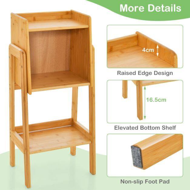 Selected Material: Crafted from premium natural bamboo, the bookshelf showcases both durability and elegance. Its natural finish adds a touch of sophistication to your space while offering long-lasting functionality.